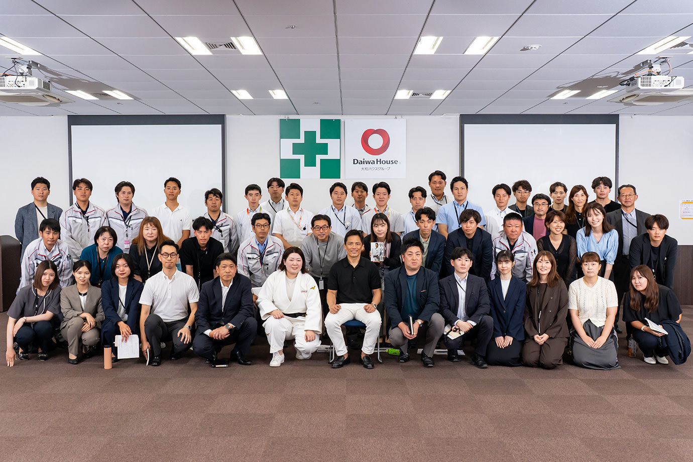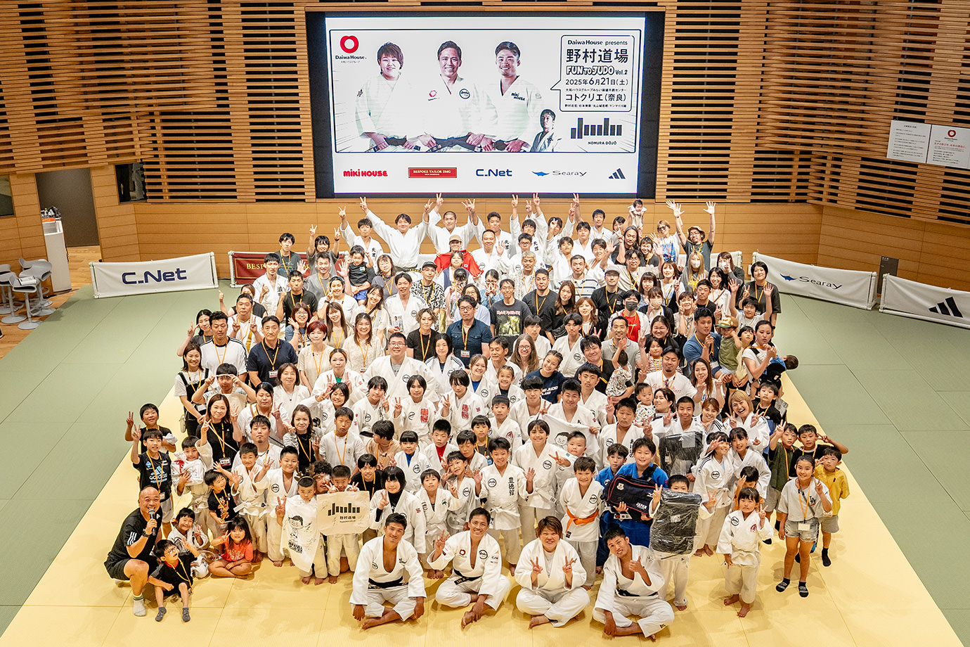 コトクリエにて70周年アンバサダー野村 忠宏氏と大和ハウス工業 人事?サステナビリティ擔當常務執行役員能村が対談。柔道とビジネスの観點から、「多様性について」語り合いました。その後、第2回目となる野村道場 FUN TO JUDOを開催。野村氏のほか、ロンドンオリンピック銀メダリストの杉本美香氏?天理大學出身で世界選手権を2度制した丸山城志郎氏?全?本選抜柔道優勝のドンマイ川端氏も講師として參加し、會場は大いに盛り上がりました。