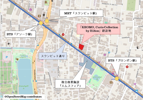 2.アクセスに優(yōu)れた好立地 當ホテルは、タイの首都バンコク中心部にあり、周辺には、外資系ホテルや高層オフィスビル、大型複合商業(yè)施設(shè)などが立ち並ぶ「スクンビット通り」沿いの好立地に位置しています。當エリアは、2023年12月に延床面積約25萬㎡を誇る、コンサートホールも併設(shè)した複合商業(yè)施設(shè)「エムスフィア」がオープンするなど、今後も発展が見込まれています。 交通面では、バンコク內(nèi)各所へのアクセスに便利な高架鉄道BTS(Bangkok Mass Transit System)や地下鉄MRT(Metropolitan Rapid Transit)の最寄り駅も當ホテルから徒歩圏內(nèi)にあるため、ビジネスから観光まで幅広い利用が見込まれます。