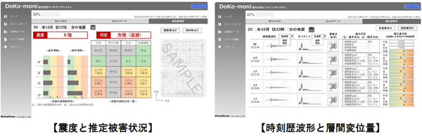 近年、自然災害が激甚化?多様化するなか、企業が管理する施設では大規模自然災害に備えたBCP対策の重要性が高まっています。異常気象や地震の発生時には、施設管理者は建物の狀況を把握するために、テレビ?インターネット?現地からの報告など複數の方法で気象や地震などの情報を取得する必要があり、初動の遅れとなるリスクがあります。 そこで當社は、複數の物件における建物ごとの気象情報と地震情報を一括管理できる総合災害モニタリングシステム「DoKo-moni」を開発しました。本システムは、株式會社ナレッジフォーサイトのリアルタイムモニタリング技術を活用し、建物に設置した各種センサー(加速度?風速?雨量など)やカメラのデータを一元管理できます。地震発生時には1分程度で推定被害狀況の取得が可能なため、災害発生時の効率的な補修點検や業務の速やかな再開に貢獻します。 2023年3月から當社の一部物件(物流施設「DPLつくば中央」、「DPL浦安Ⅲ」)にて試験運用していましたが、2024年12月2日から物流施設や事務所?店舗などの建築を検討する企業への提案を開始しました。 |