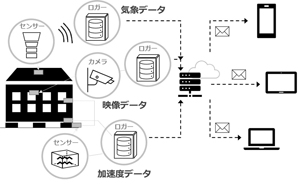 本システムでは、気象や地震に関する最大6種類のデータ(気溫?濕度?風速?雨量?加速度?映像)をリアルタイムで取得?確認することができます。気溫や濕度に基づく熱中癥対策などが可能なほか、風速や雨量を確認することで強風?豪雨への対策を講じることができます。 |