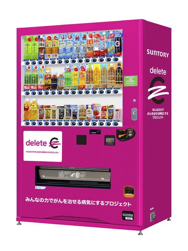 deleteCは誰もが參加できて、みんなでがんの治療研究を応援していける仕組みづくりに取り組んでおり、サントリー食品インターナショナル株式會社がその趣旨に賛同し2021年9月に売上の一部が、がん治療研究への寄付になる「deleteCモデル自動販売機」の運用を開始しています。