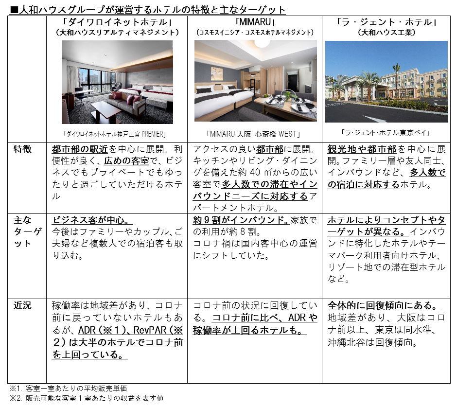 大和ハウスグループの強みを活かし、各社で異なるターゲットのホテルを展開するとともに、より良いサービスを提供することで、ホテル業界の活性化に貢獻していきます。