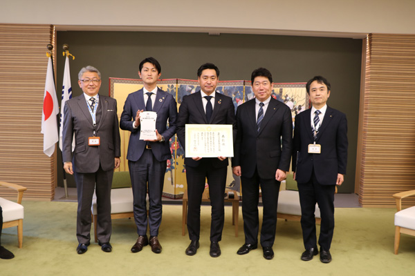 左より、川崎市副市長(zhǎng) 藤倉(cāng)茂起さま、大和ハウス工業(yè) 東京本店建築設(shè)計(jì)部 課長(zhǎng) 網(wǎng)代孝生、東京本店建築事業(yè)部