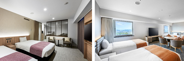 ご家族での旅行、海外からのお客さまにもゆったりと過ごしていただけるよう、一部の客室を統合し、4名で泊まれる「ファミリーフォースルーム」(58.8㎡)を新設しました。