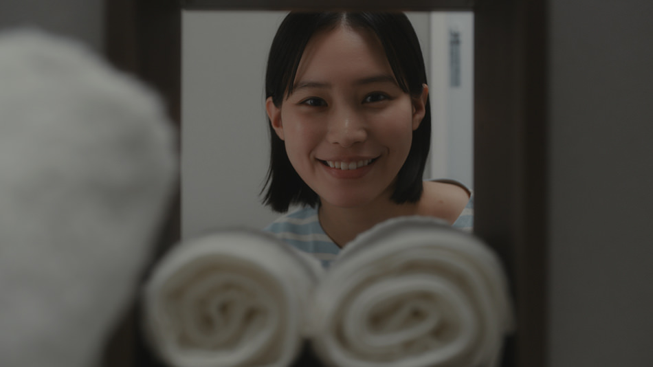 そんな男性を見かねた女性は、洗面所にあるD-ROOMの便利な機能を教えてあげます。