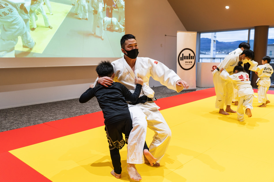 「Daiwa House presents?第七回 野村道場」が2月19日(日)、野村氏の故郷、奈良県にある大和ハウスグループみらい価値共創センター「コトクリエ」で開催されました。120名の小中學生と約300名の観覧客や保護者の方々が見守るなか、対面形式で行われました。當日は、特別講師の篠原信一さん、スペシャルゲストの大野將平選手が登場し、まず、野村氏から「柔道の父」と呼ばれた嘉納治五郎氏の「精力善用」「自他共栄」のお話と禮節講義の後、技術指導や亂取りなどが行われました。