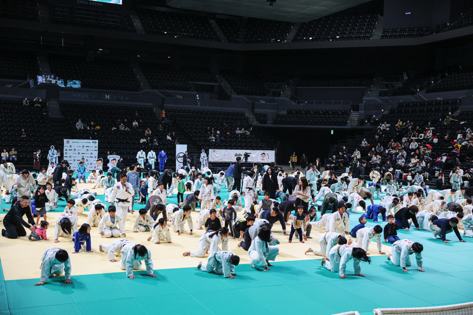 「Daiwa House presents 第十一回 野村道場」が2025年2月16日(日)九州初開催となる「SAGAアリーナ」で開催されました。小學3年生から中學3年生の男女、約150人が參加し、野村忠宏氏のほか、中村美里選手やウルフ?アロン選手などの講師たちが各々の得意技を披露。子どもたちは技のポイントを教えてもらったり一定時間、技を掛け合う「亂取り」で相手をしてもらったりと憧れの選手から指導を受けました。