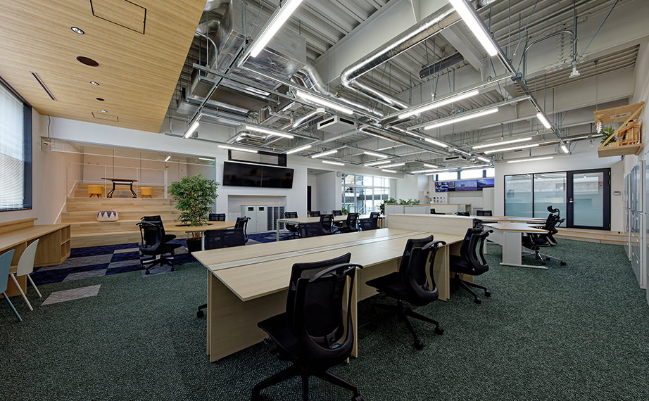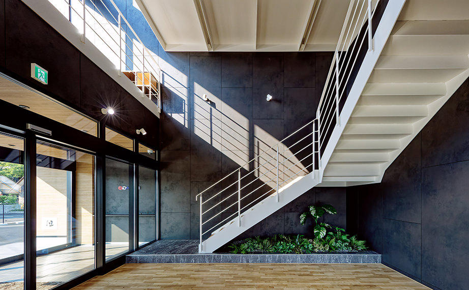 施主は空調?換気等の設計施工を行う會社であり、企業発展の起點になることを目指した建築計畫です。吹抜とスキップフロアを設けることで従業員同士の交流促進や、空気?熱の流れを利用した「ZEB」設計を実現しました。