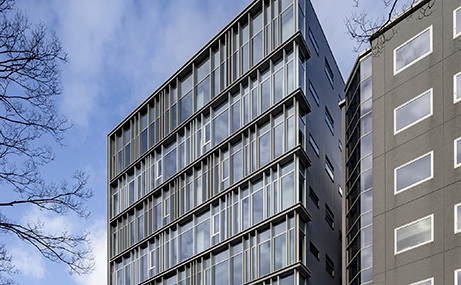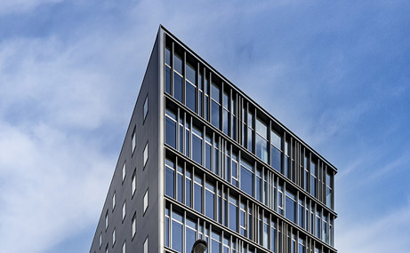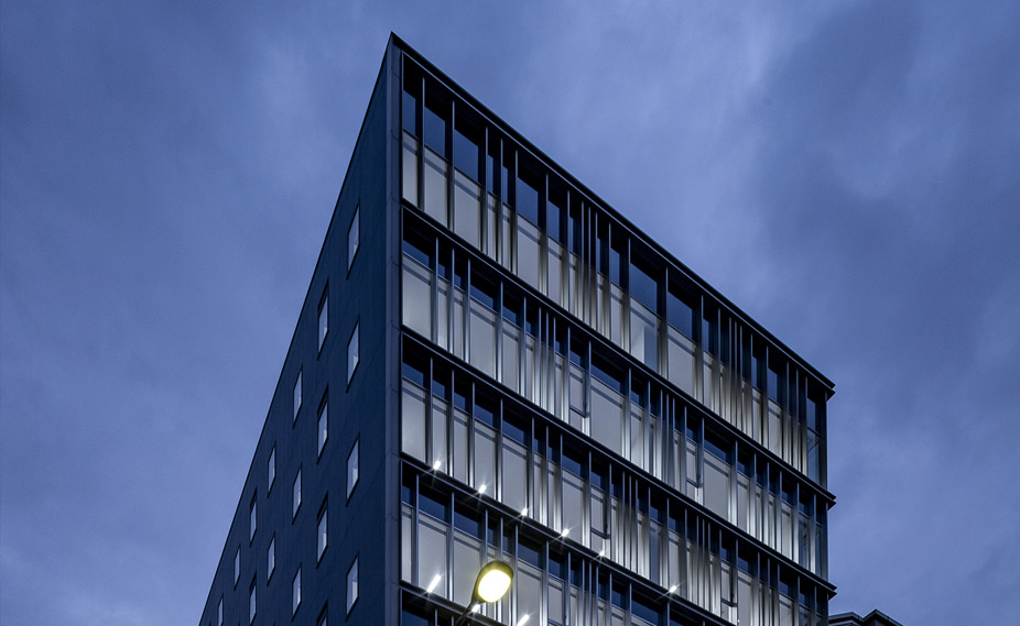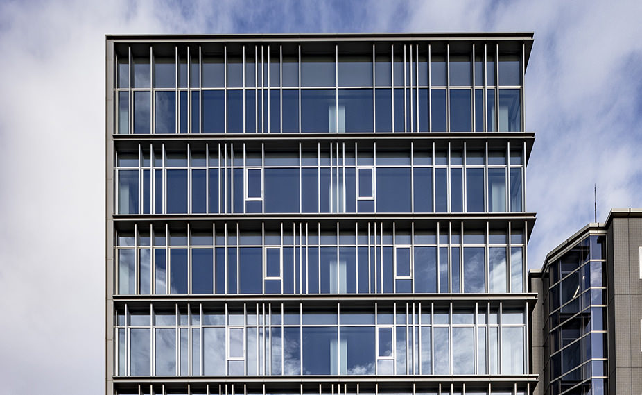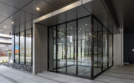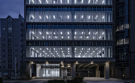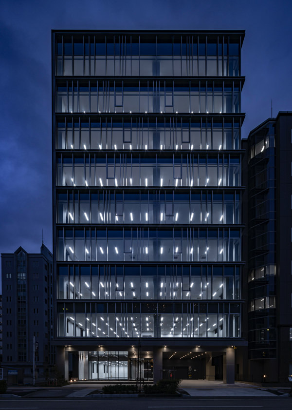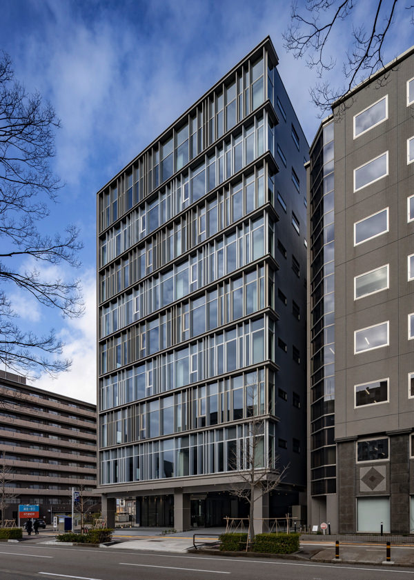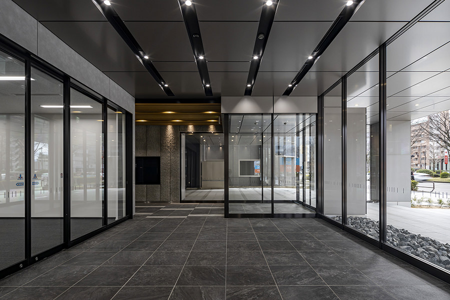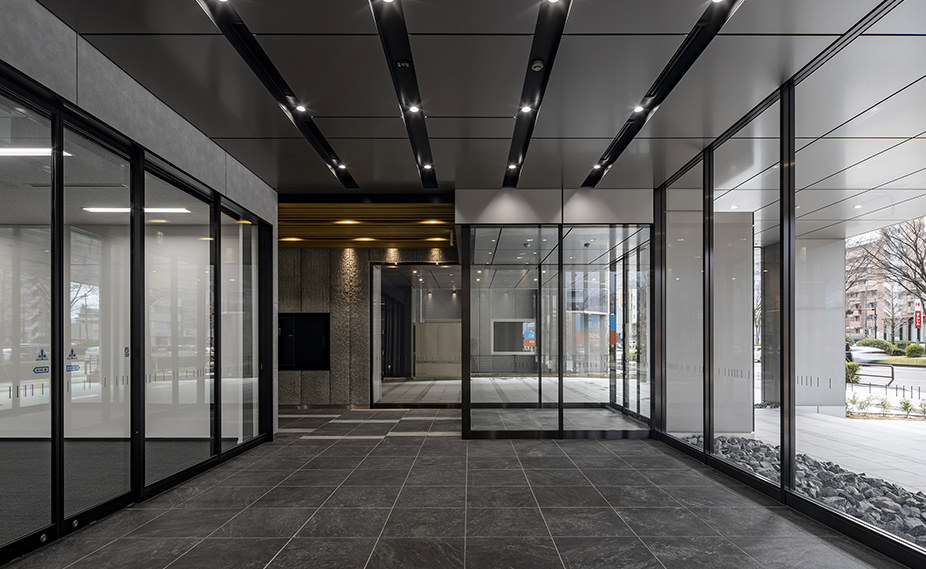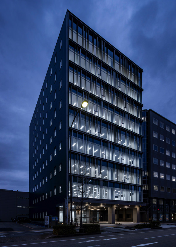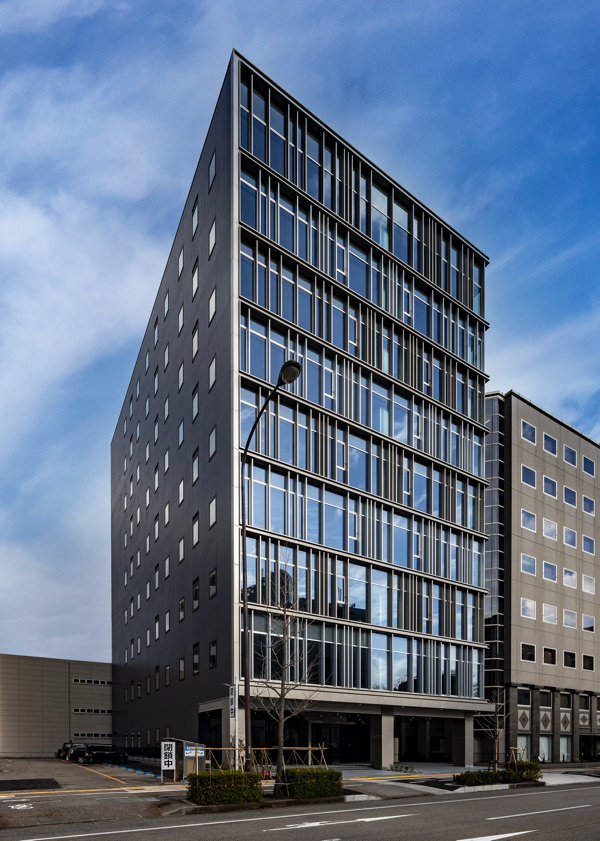 金沢の街は、金沢城と兼六園を囲むように、21世紀(jì)美術(shù)館などの文化施設(shè)、オフィスビル街、商業(yè)施設(shè)街、繁華街が立地する城下町特有の都市構(gòu)造を持っています。近年、中心部に位置していたオフィスビルが金沢駅西側(cè)エリアに移転し、金沢駅西エリアが変化しています。こうした街の変化のうねりを建物で表現(xiàn)したいと考えました。ファサードは、古都金沢をイメージさせる格子を取り入れながらも、移ろいや揺らぎを表現(xiàn)したものとしました。このファサードに採用した意匠を、建物內(nèi)外に形を変えて取り入れ、建物全體で一貫したイメージが醸し出されることを目指しました。