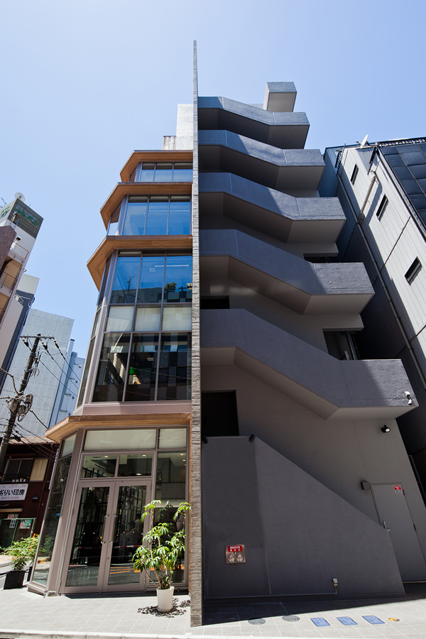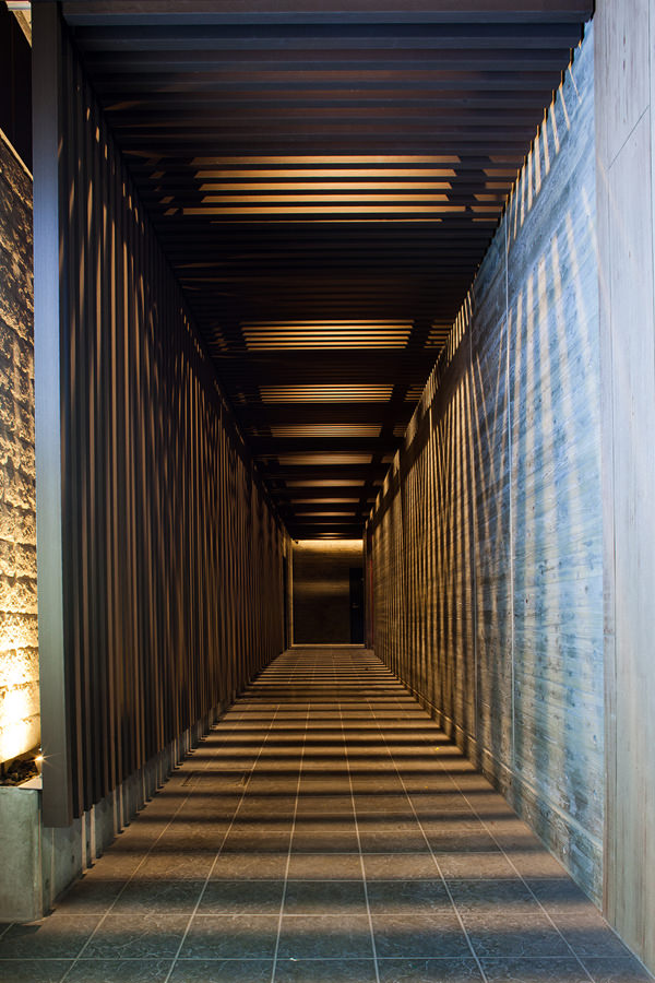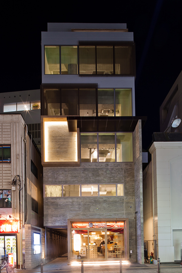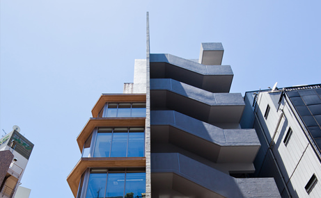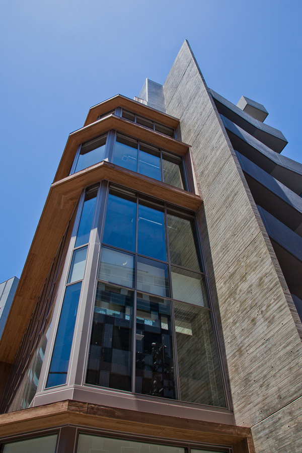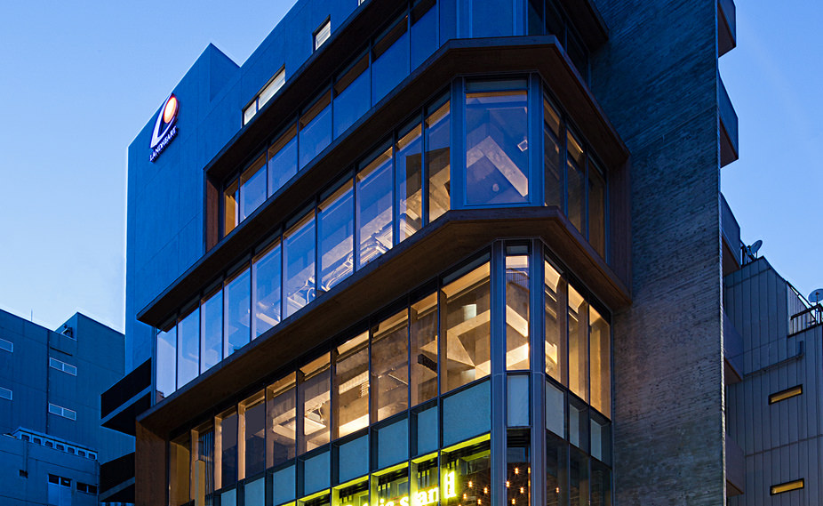 本計(jì)畫地は、駅前の商業(yè)施設(shè)と緑溢れる中央公園を結(jié)ぶ動(dòng)線上に位置し、木を基調(diào)とすることで雙方を結(jié)ぶ中継點(diǎn)となる施設(shè)を?qū)g現(xiàn)した。GLから最上階まで木調(diào)アウトフレームを一筆書きのように設(shè)けることで、各層の空間を切り取りながら繋ぐことができ、まちのシークエンスを鉛直方向へ延ばす事ができた。