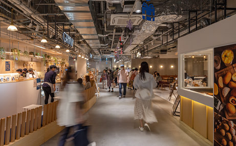 名古屋市栄地區、2018 年に惜しまれながら閉店した舊丸栄百貨店跡地に將來構想のため、10 年という期間限定で商業施設を整備する計畫。1街區の半分を占める敷地面積の大きさから、舊丸栄百貨店跡地の地主?地元商店連合會から、街の活気、魅力が失われることを危懼され、商業施設という都市機能を継続させる開発を要望されました。 感染癥による在宅ワークの普及、栄中心部の居住者や共働き家庭の増加という、現代の社會狀況を考慮し栄地區で今、求められる食の形態、「グローサリー」「中食」「日常利用できる外食」の3 つをメインとした「普段使いしやすい施設」としました。