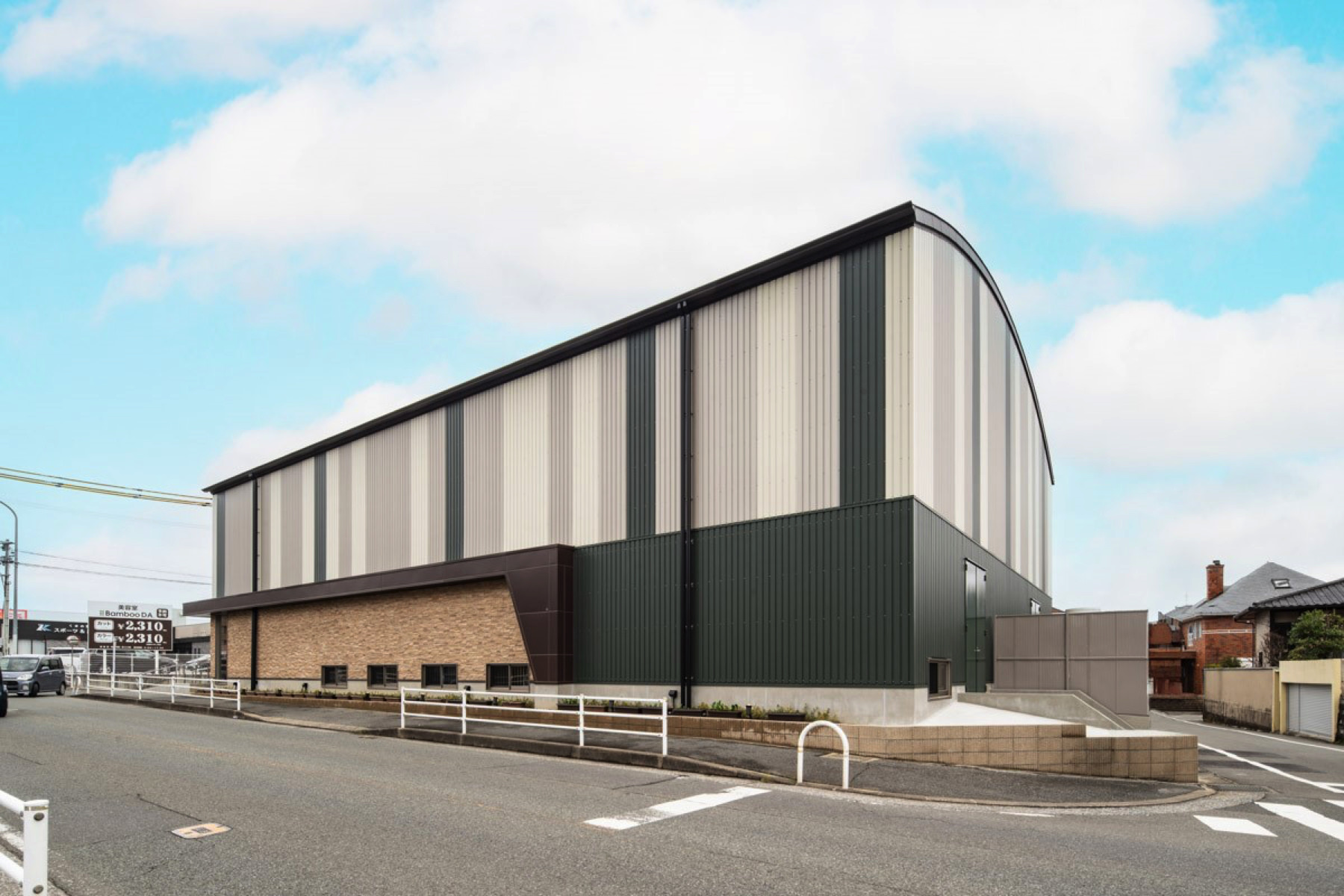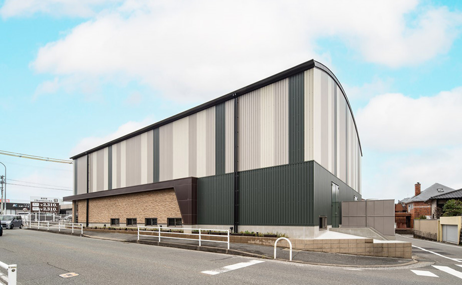 外壁は3色の角波鋼板を組み合わせ建物が立體的に見えるように工夫し、色についても油山をイメージした色としました。