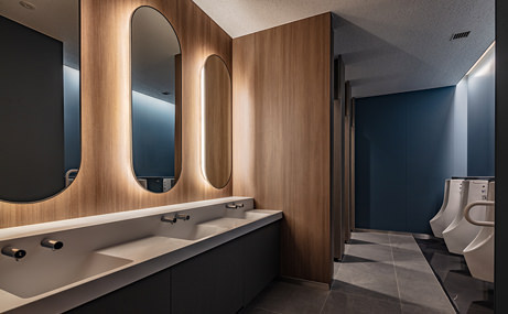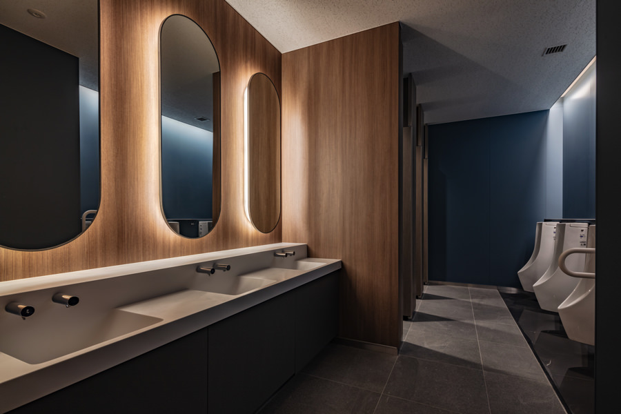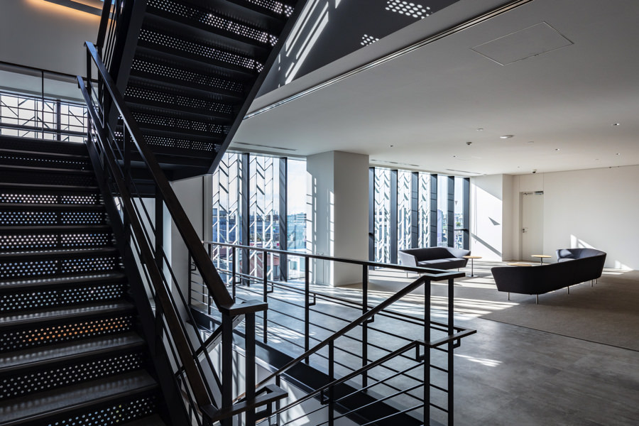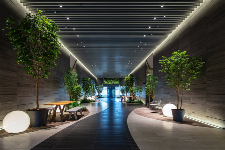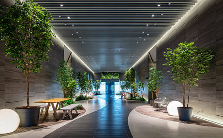 最先端の研究施設(shè)が集積するレンタルラボ。建物を東西に貫く40m超のエントランスホールには研究者とともに風が流れ込み植栽を心地よく揺らします。単調(diào)になりがちな長い壁面にはタイルより數(shù)mm出した真鍮棒をランダムに挾み込み、間接照明による陰影で流れとリズムを出しています。2棟構(gòu)成で建築され、その棟間にはメカニカルバルコニーを設(shè)けテナントのフレキシブルな研究內(nèi)容の変化による設(shè)備機器の更新が容易な形狀としました。