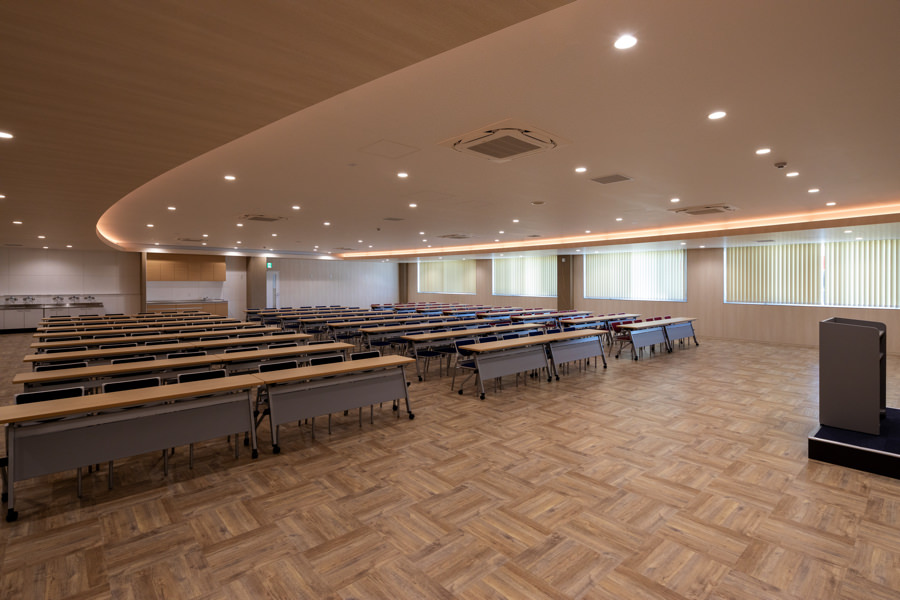 応接エリアは印刷物確認(rèn)のため直遮光( 特に西日) の制御が必要でした。単純に窓を排した閉塞的な建物とならぬようルーバーを設(shè)け直遮光の制御を行いました。