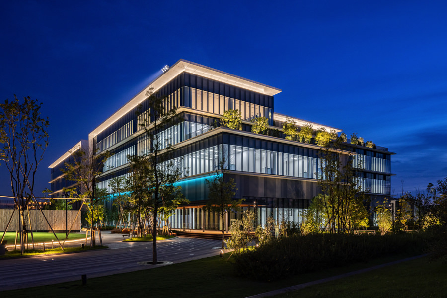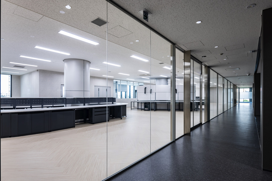 この施設(shè)は島津製作所の主力分野である分析計測機器の応用技術(shù)を「魅せて」、お客様と「繋げる」ことをコンセプトに計畫しました。建物の外周部にはラボラトリー機能、中央には大きな吹き抜けと「見せる階段」を設(shè)けた回遊型の形狀としています?!敢姢护腚A段」からは各階のラボラトリー內(nèi)部やオフィス內(nèi)部まで見渡せ、開放的なラボとなっています。中央部の吹き抜け上部にはトップライトを設(shè)けてあり、建物全體及び1Fのエントランスホールまで自然のやさしい光を?qū)盲堡蓼埂?/p>
