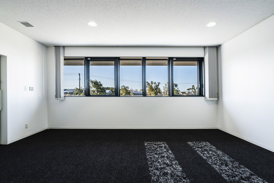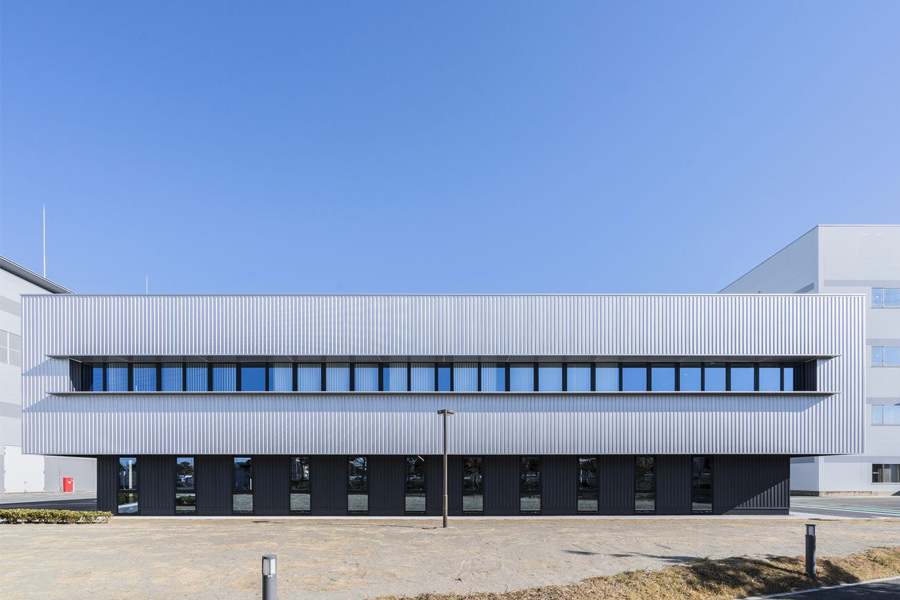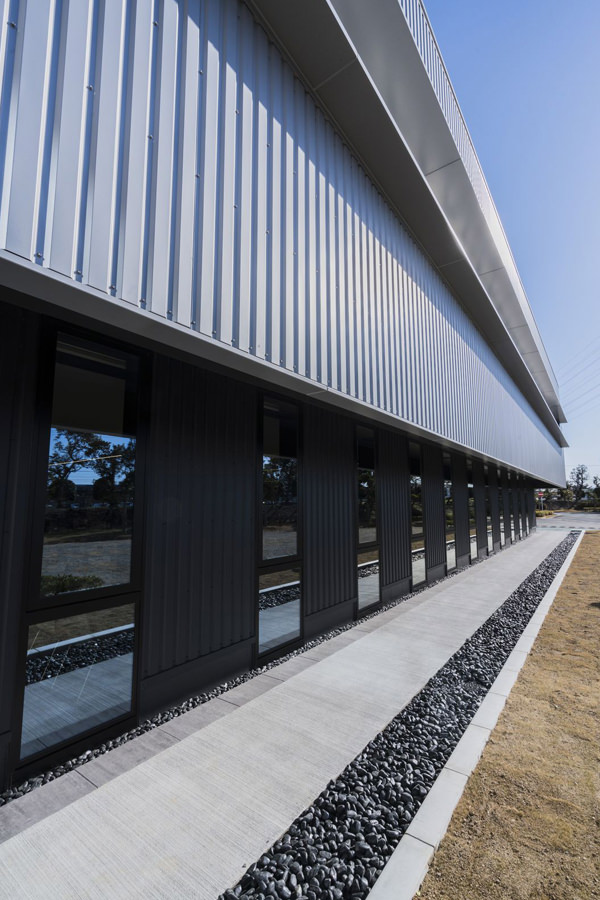 豊橋事業所の外観は連窓「ヨコ」にて成り立っていました。その連窓「ヨコ」を、アイコンと捉えて食堂棟の窓形狀を考えた案件です。2階には會議室、1階には食堂が入る建物となっている為、『會議室』考える場→『ヨコ』、『食堂』安らぐ場→『タテ』とし、ファサードを造っています。