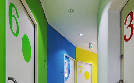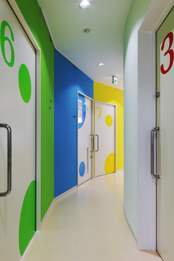 閑靜な住宅街に建つ小児科クリニックの計畫です。主要な道路に面しない計畫地に対して、何らかの配慮が必要とされました。サークル狀の動線を取り入れることで患者さまとスタッフの導線を分けるなど、感染対策のゾーン分けにも考慮しました。その動線による円形プランに変化を與え、道行く人にインパクトを與え記憶に殘るファザードを試みました。訪れた子どもたちが「何だろう」と好奇心を抱いてくれれば幸いです。