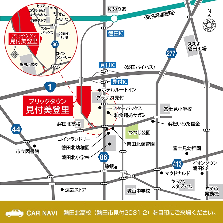磐田北高校(磐田市見付2031-2)を目印にご來場ください。