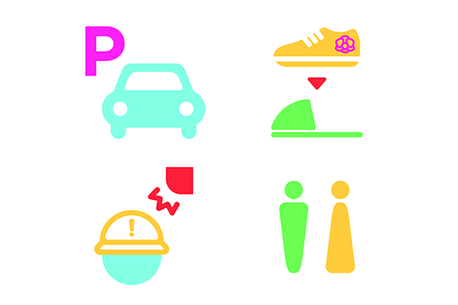 サインには平仮名や英語を併記し、さらに、直感的に理解しやすいオリジナルピクトサインを採用しました。また、施設を安全に利用できるよう、配電盤にはカバーを設けました。