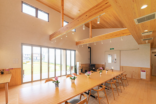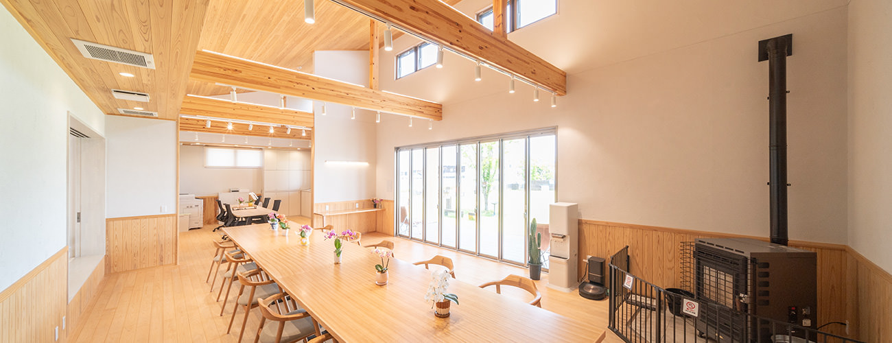 內裝材には地元の杉と檜を使用し、地域の木材利用や環境保全に貢獻しています。