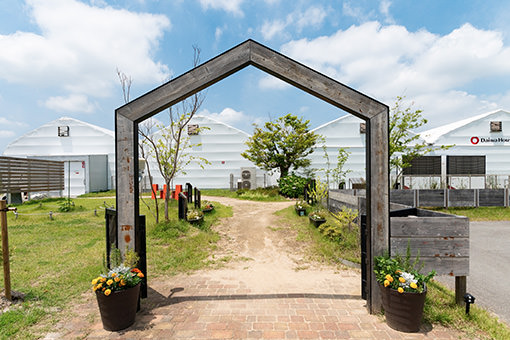 勾配屋根の大部分に太陽光パネルを設置。太陽光発電システムを採用することで、環境保全に貢獻しています。発電したクリーンな電力は隣接のビニールハウスで使用することで、光熱費の削減と脫炭素化への貢獻につなげます。