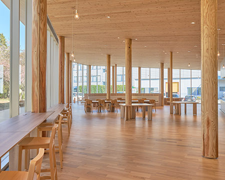 構(gòu)造軀體の一部と內(nèi)外裝の木質(zhì)化による136m2の木材利用で、スギ約226本分の炭素固定効果を?qū)g現(xiàn)。