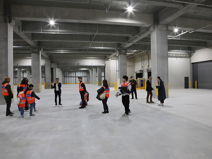 ご參加くださった方々のもう一つの大きな目的は、「DPL江東深川 施設見學會」です。施設の共有スペースの説明や、株式會社ビームスホールディングス様の物流センターの見學など盛りだくさんの內容で、小學生の參加者は「社會科見學のようで楽しかった」と、大満足された様子でした。株式會社ビームスホールディングス様には、稼働中の物流センター內を見學させていただき、自動ロボットによる搬送や、検品の風景など、大人の方々にとっても、その最新鋭の設備には驚きがあったようです。