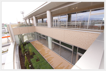 そのほか、屋上庭園、霧狀の水の噴射により周囲の気溫を下げるウォーターミスト?花粉や黃砂などを內部に持ち込ませないエアシャワーの設置、熱線吸収ペアガラスの採用などにより、低環境負荷の快適空間を創造。數々の技術を盛り込んだ最先端オフィスとして、地域のランドマークにもなっています。