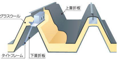 屋根が受ける日射熱を遮斷して室內への熱の侵入を抑えます。