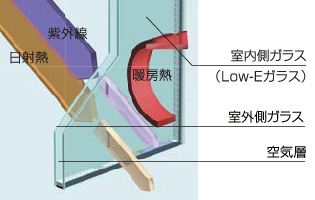 斷熱性能の高いガラスを條件に合わせて選び、日射負荷を抑制します。