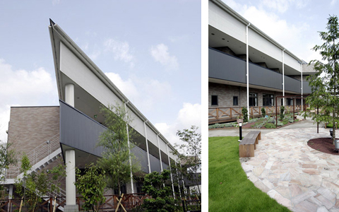 敷地面積は約750坪(2,475,97m2)で、2階建ての建物床面積は413坪(1階?2階=1,367,941m2)。敷地は広く、建物外観の意匠は瀟灑で、設備の充実もいうまでもありませんが、とりわけ建物の各所、隅々におよんで事業者の強いこだわりがうかがえるところに、並々ならぬ取組みが感じられます。「こんなに立派でいいんですか」と、行政側も建物へのこだわりに驚いたそうです。