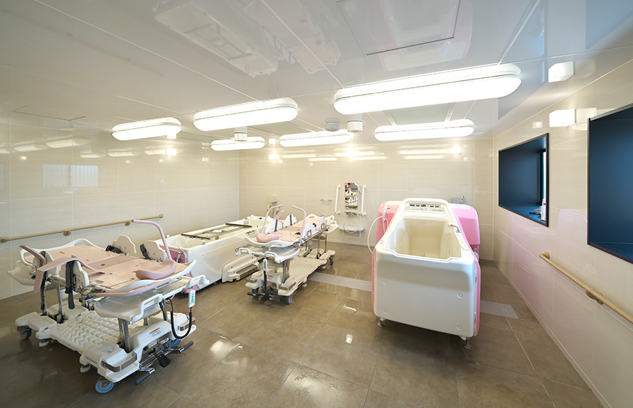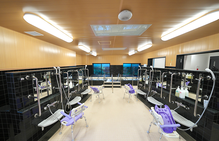 新施設(shè)は、人材確保と雇用維持のため、「働きやすい環(huán)境づくり」にもこだわっています。なかでも大きな特徴として挙げられるのが、50床×2フロア(2?3階)の療養(yǎng)室の配置。これにより、人員配置數(shù)を抑制でき、作業(yè)の負(fù)擔(dān)軽減も図れます。