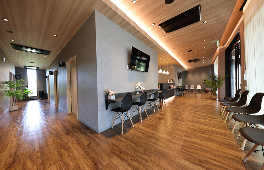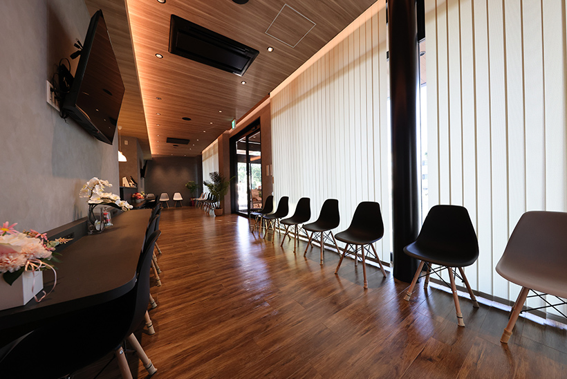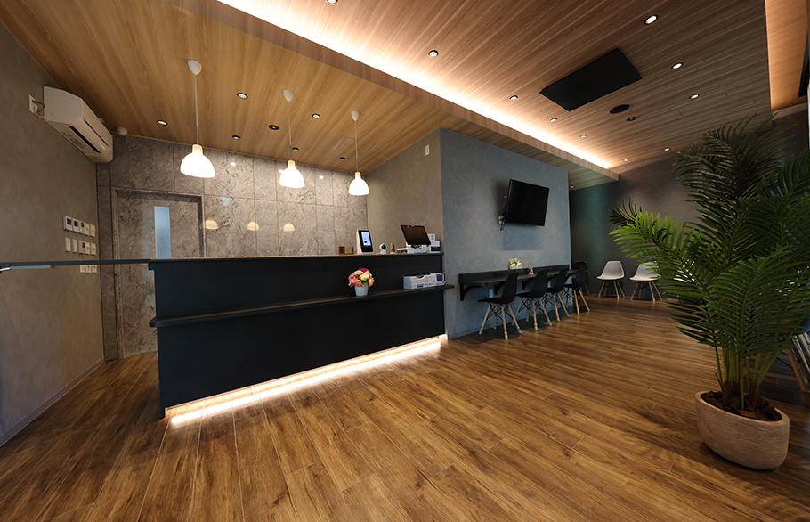 受付はメインの顔となる場所ですから、そこをスタイリッシュにしながら、木目調の內裝を多く使って溫かみもありながら、ホテルのようなシックさもありながら、スタイリッシュな空間作りを目指しました。