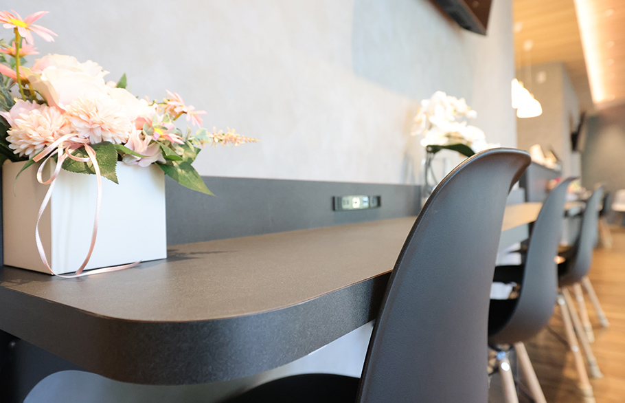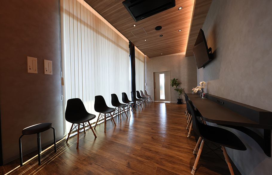 院長から「クリニックっぽくないクリニックにしたい。カフェやリゾートホテルのような雰囲気にしてほしい」とのご要望がありました。基本設計を実施した札幌市在住、北日本支社所屬の石井洋一は、患者様が最初に訪れる受付のスペースに椅子とカウンターを設置するなど、カフェのようにリラックスできるデザインに設え、まさに「クリニックらしからぬクリニック」となりました。