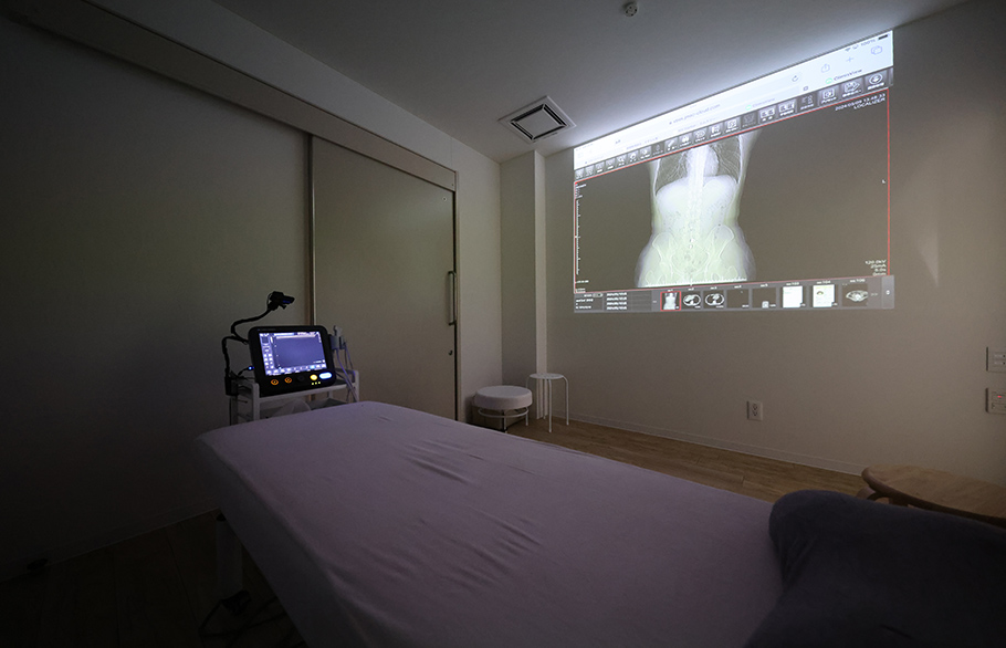 MRIやCTIの結果は、プロジェクターで投影して患者様に説明するため、通常とは異なる診療室のレイアウト設計となっています。また、リハビリテーションや予防として、ヨガやピラティスができる広々とした部屋を準備。予防から治療、そしてリハビリテーションまでトータルに患者様に提供することが可能となりました。