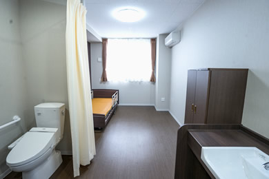 癥狀が安定しているとは言い切れない急性期治療後や、突然病狀が悪化した入居者に対応するため、2階の個(gè)室には酸素吸入用アウトレットや吸引用コネクターなどの設(shè)備が整っています。