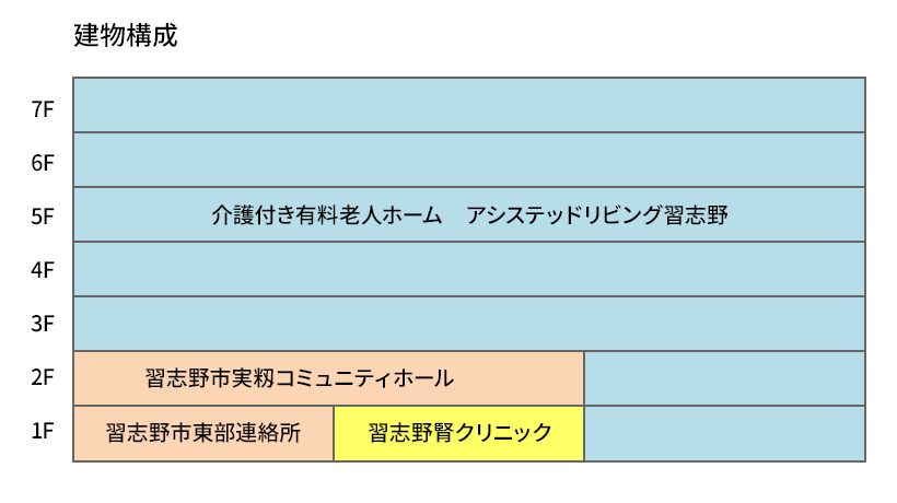 - 介護付き有料老人ホーム(100室)、透析クリニック、コミュニティホール
