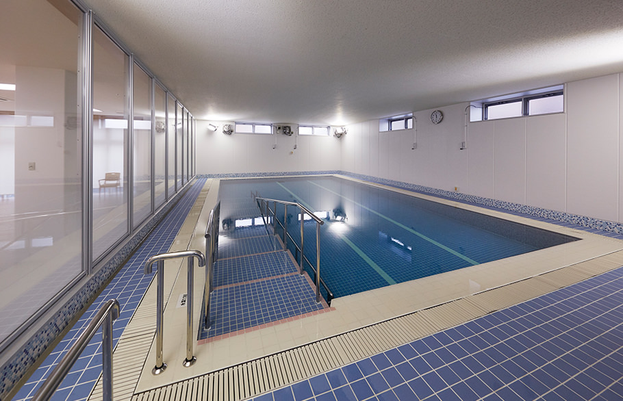 スムーズな在宅復帰支援のため、より実踐的な回復期リハビリテーションを行うための設備が充実。さらに、未病の方を対象に「基礎體力づくりによる健康増進」という目的から、舊病棟にも導入されていた屋內プールとフィットネスマシンも設置されています。