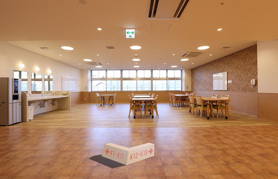 建物計畫の具體化にあたり、院內で構成した建設委員會では、①「外來と管理部門と介護事業」を1階、「手術と入院(病床)機能」を2階に配置し業務効率を図る、②外來と検査?健診機能の集約による効率化、③透析の強化(増床)④AIを含めた最新機器の導入や遠隔醫療への対応などのDXの強化 などがテーマに挙がり議論を重ねてきました。さらに、職員食堂、更衣室、休憩室、會議室、打ち合わせコーナーなど、舊病院では、病院の施設基準を満たすために犠牲となっていた“職員の働きやすさの追求” にも取り組んできました。