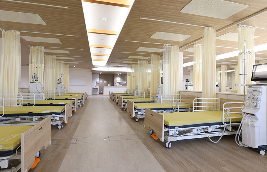 新病院では、少子高齢化がより深刻化する2040年問題も見據え、さまざまな面から機能強化を図られました。より高まる伊勢赤十字病院との連攜を前提とした回復期リハビリテーション病床の新設に伴うリハビリテーション機能の充実、それまで數床で対応していた透析の増床(50床)、さらに健診機能の充実や感染癥対策にも取り組まれています。