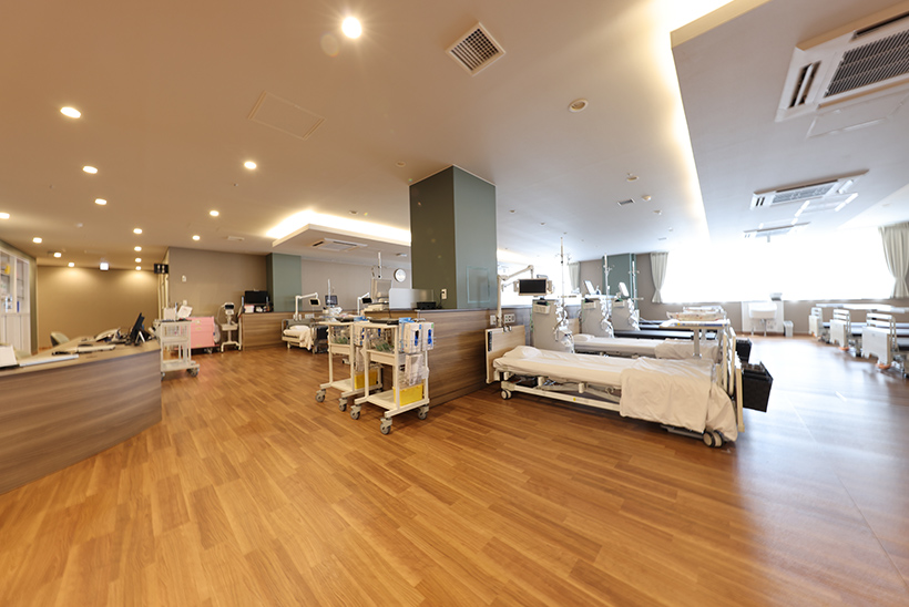 施設づくりにあたっては、“いま求められる機能”を可能な限り反映しようと考えました。それは、健康壽命延伸の一端を擔う「健診センター」、ニーズが高まる透析治療を行う「血液浄化センター」、在宅療養をサポートする「訪問看護ステーション」などです。なかでも、透析と訪問看護については、いままで法人內のクリニックで行っていたものを一層の機能強化を図り、新病院に取り入れたカタチです。