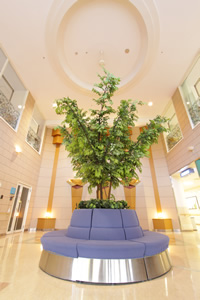 | POINT2 | 院內における快適な生活環境を創造 病室は自宅の居室に、デイルームや廊下は街角の風景に感じられるようデザインプランニング。屋上には庭園を設けており、四季の草花や樹木のある屋外で自然とふれあいながら、リハビリテーションが行えます。 |