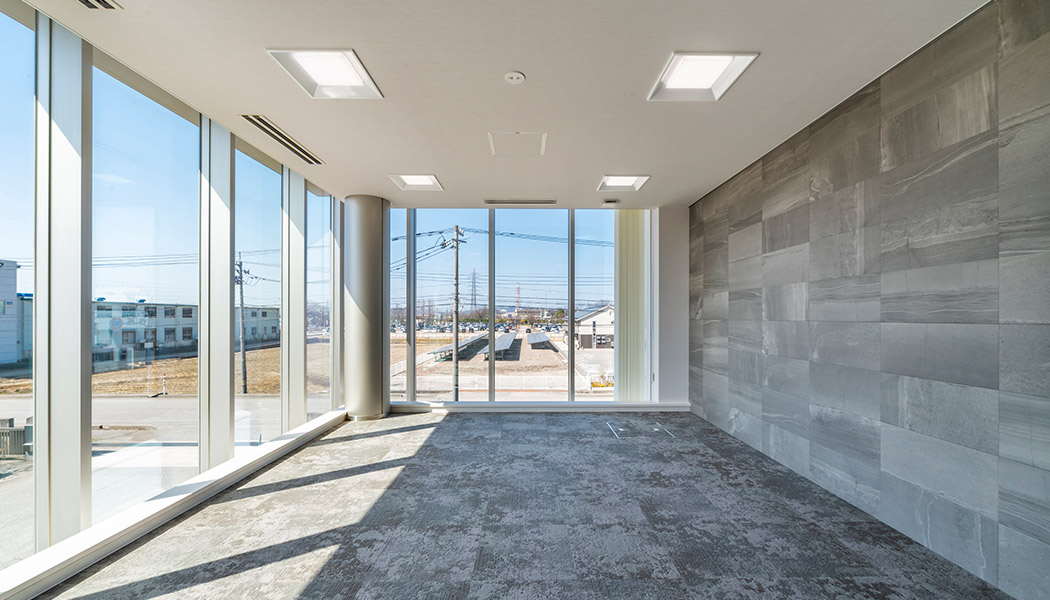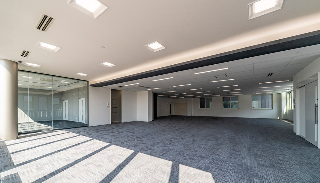 大開口のLow-E複層ガラスによる採光と照度センサーにより、照明負荷を低減。斷熱強化を行い高効率空調機?全熱交換器を採用することで冷房負荷を低減し、光熱費を削減しながら快適な執務環境を実現しました。