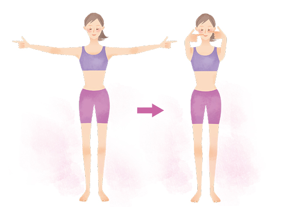 両足を肩幅に広げて立ち、両手を左右に広げます。目をつぶって人差し指を立て、顔の正面で両手の人差し指を合わせてください。ぴったりと合っていなければ、體がゆがんでるというサイン。右手が上にあれば右肩?右骨盤が上がっているといえます。左手が上ならその逆。また、右手を前にして交差していれば、右肩?右骨盤が前にねじれています。左手を前に交差していれば、その逆のゆがみが生じています。