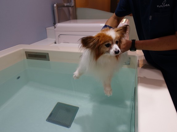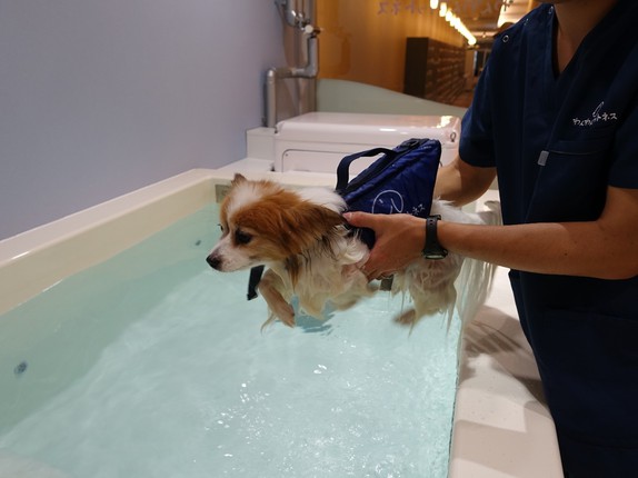 2パターンあって「運動不足解消」または「ダイエット」ですね。特に夏は、運動不足解消で來店されるケースが多いです。7才以上のシニア犬も來店されます(年齢によってはお斷りするケースがあります)。プールの中は負擔が少ないので、體を効率よく鍛えることができます。関節もプールの中だと柔軟性が上がり、関節の可動域が広がります。