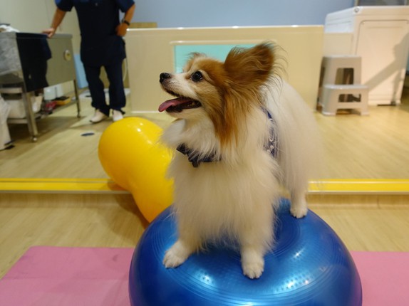 ウォーターエクササイズ、エンジョイアスレチック、ボディマッサージが體験できます。エンジョイアスレチックでは、バランスボールやハードルを利用し、楽しみながらコンディショニング。バランスボールを用いたフィットネスは、體幹を鍛えることができます。姿勢もよくなるし腳も早くなりますよ(笑)バランスボールを乗る時グリップ力を要するので、地面を蹴る力も自然と強くなります。そういった點では、ドッグスポーツをされている小型犬に向いています。