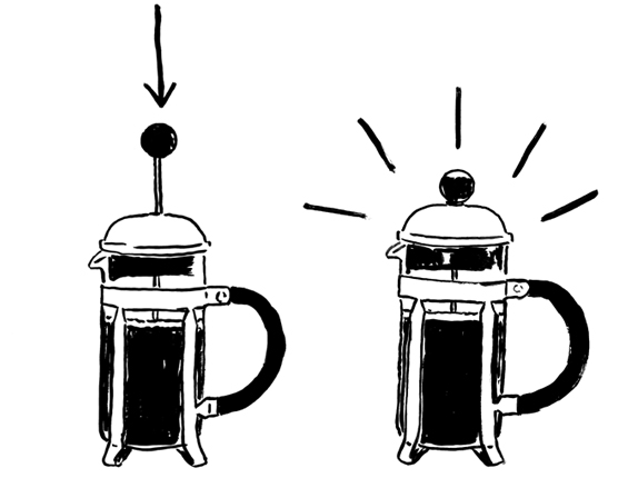 3.4分経ったらプランジャーを押し下げる。 4.出來上がり!