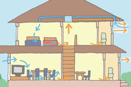さて、ここからは同じ“斷熱性能”という観點で、建物內(nèi)を暖かく保つ仕組みについて、大和ハウス工業(yè)の社員がお話しします。「建物內(nèi)で溫度差ができる狀態(tài)は、実は危険なんです」と語るのは、商品開発部の木口。「暖かい部屋から急に寒い廊下に出た時に『ヒートショック』と呼ばれる現(xiàn)象が起き、體に負擔を與えます。お年寄りの場合は、重大事故につながることも」。さらに、溫度差があると冷たい場所から暖かい場所へ風(fēng)が流れるため、冷気を引き込んでしまい悪循環(huán)。寒い部屋が結(jié)露して、カビの原因になることもあるそうです。