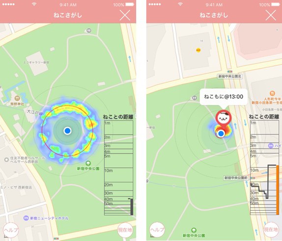 また、今までの貓探しは、『多分この辺りにいるだろう』という勘頼みでしたが、「ねこもに」だとスマホの地図を使った貓探しが可能となります。
