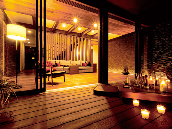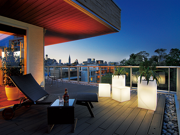 植栽に光を當てるなど、外構やバルコニーの照明を工夫すれば、家の中と外の融合性が高まり、居心地の良さが増します。